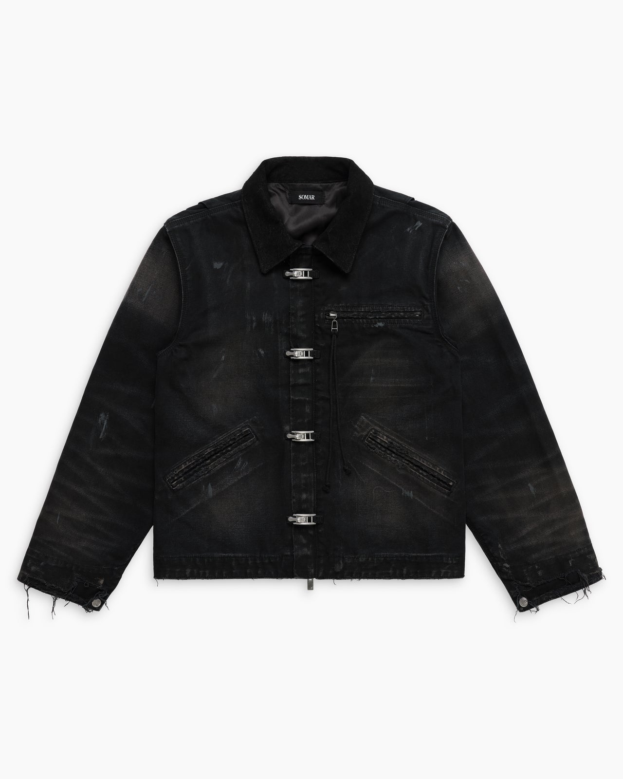 100% 420gsm heavy cotton canvas shell, vintage rough-out suede cow leather collar 50% viscose, 5% cupro, 45% polyester lining